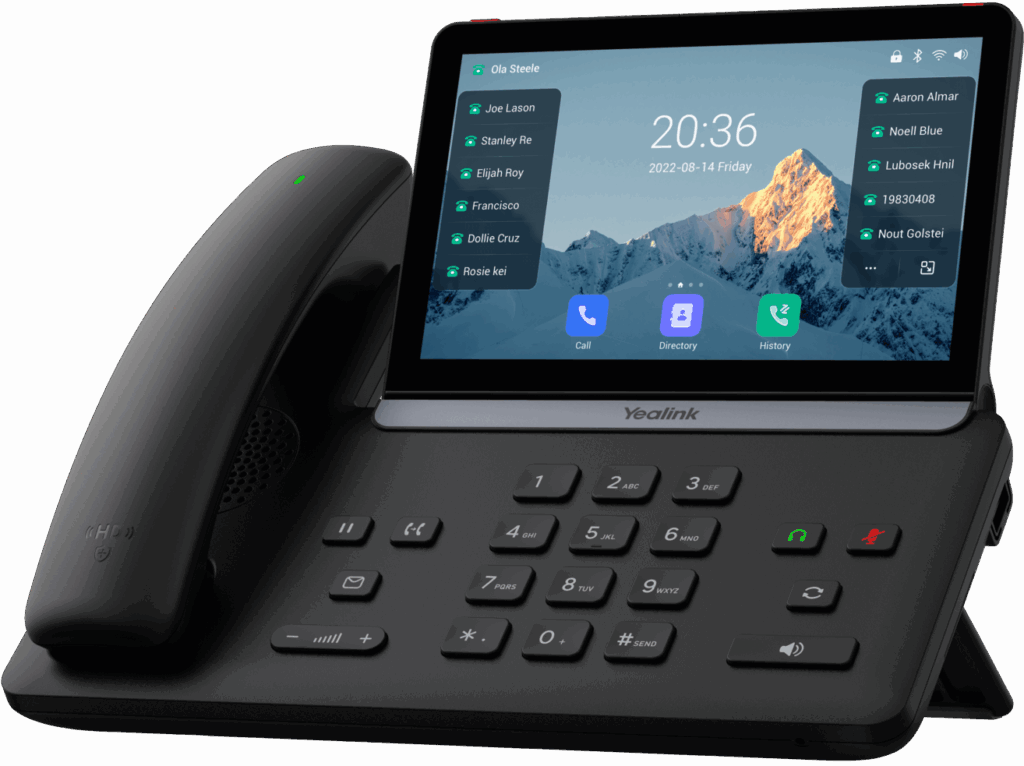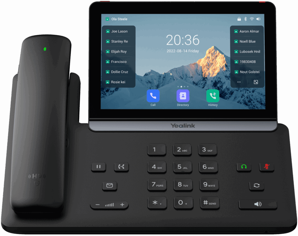 Il dispose d’un écran tactile ajustable de 7 pouces (1024 × 600) et peut gérer jusqu’à 16 comptes VoIP, ce qui le rend idéal pour les postes multi-lignes, les standards ou les postes de direction.